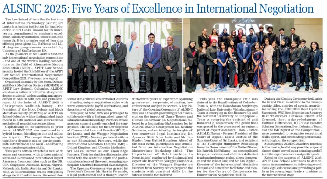 ALSINC 2025 : Five Years of Excellence in International Negotiation