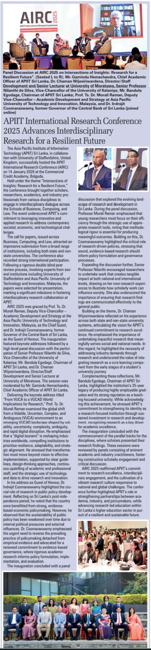 APIIT International Research Conference 2025 Advance Interdisciplinary Research for a Resilient future